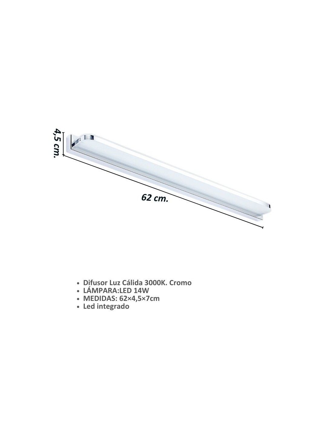 APLIQUE LED DIFUSOR KELSI 14W CROMO LUZ CALIDA 3000K