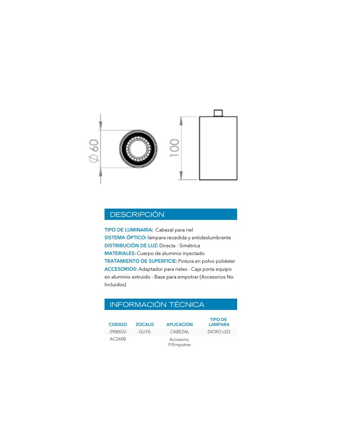 CABEZAL DICRO LUKKA 2900 GU10 BLANCO ALUMINIO LUCCIOLA