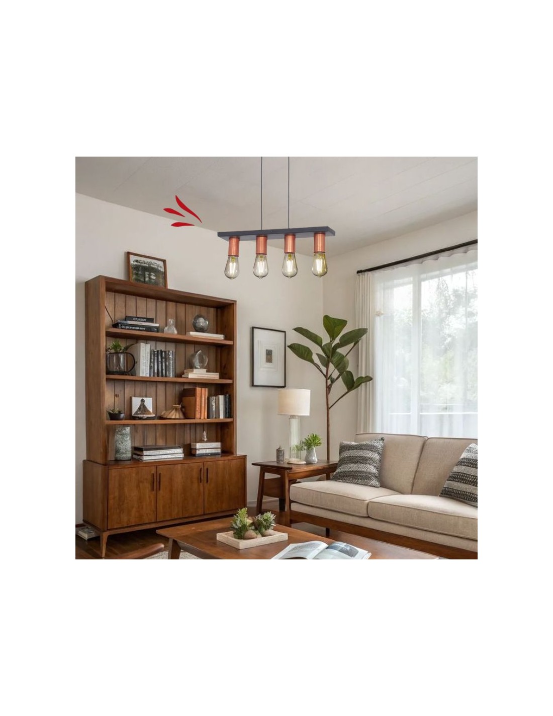 COLGANTE 4 LUCES NEGRO/COBRE FAROLUZ