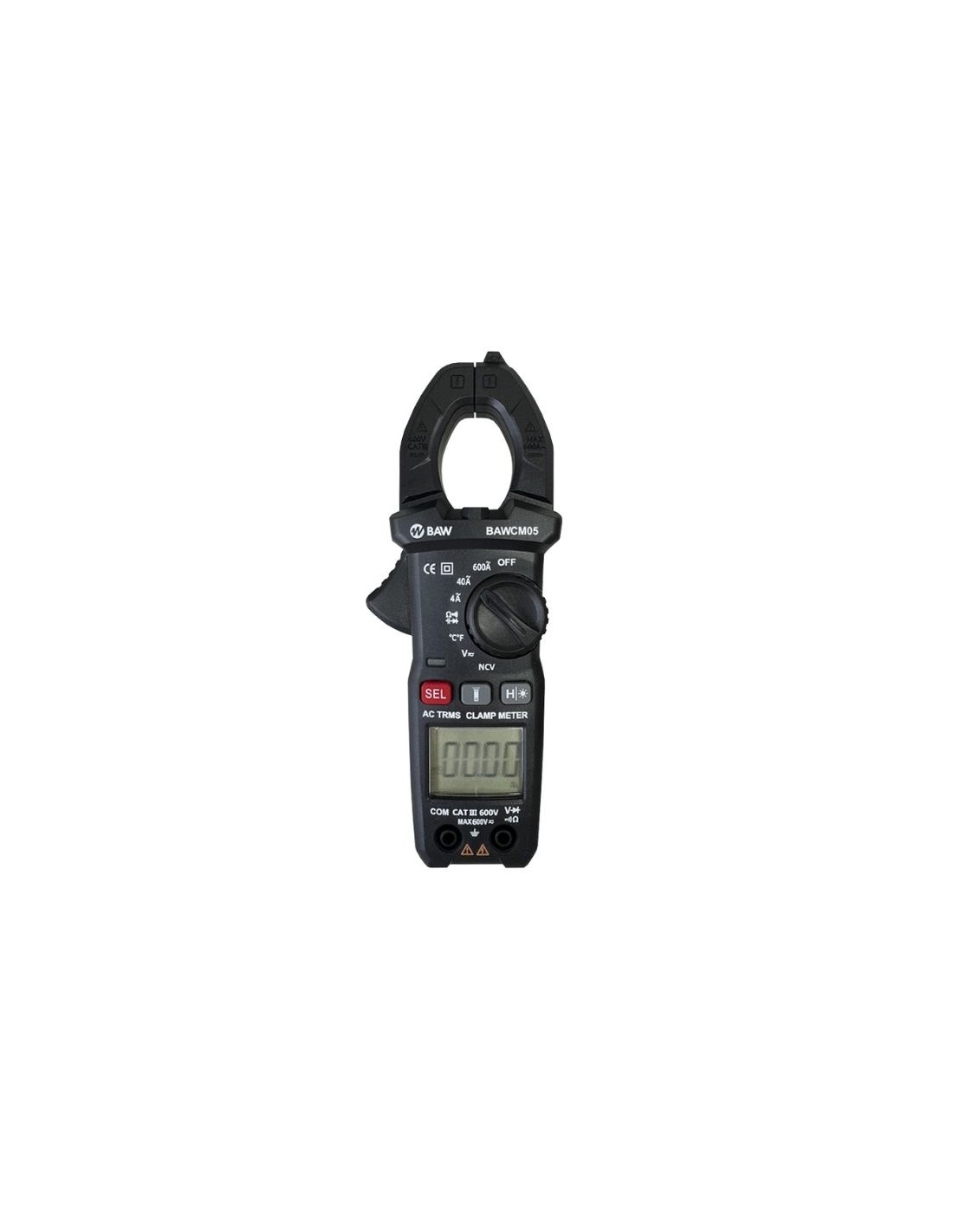 Marca BAW. Pinza voltamperométrica autorrango TRMS. Pantalla retro-iluminada de 3 ¾