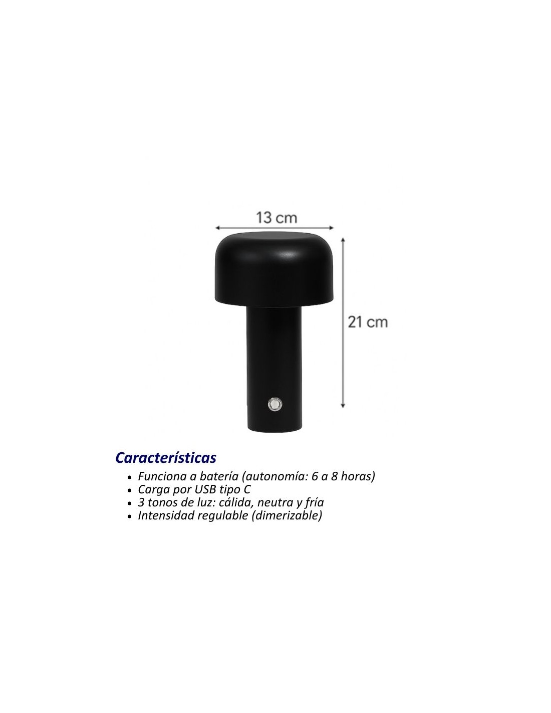 3 tonos de luz y brillo regulable (6–8 h de autonomía)