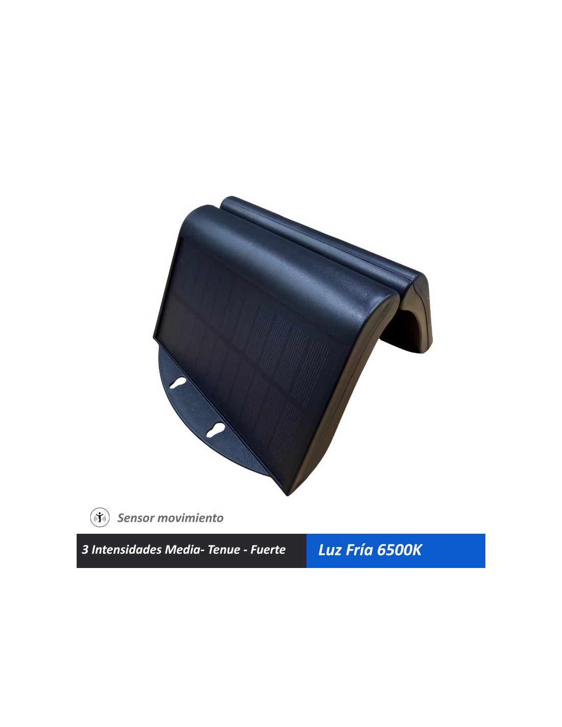 APLIQUE LED SOLAR DETECC MOVIMIENTO NEGRO IP44 6000K 3 INTEN