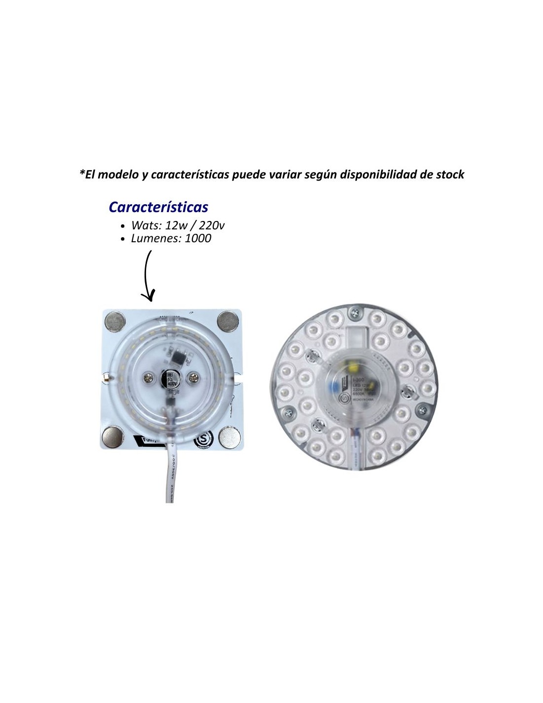 PLAQUETA LED IMANTADA 12W LUZ FRIA 6500K 1000LM