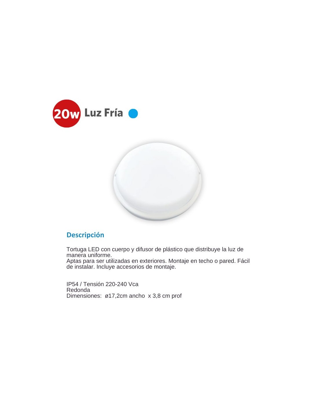 TORTUGA LED REDONDO BLANCO 20W FRIA 6500K SICA